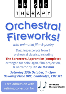 If you are unable to attend the concert but would still like to make a donation to The Music Therapy Charity then you can do so here.
